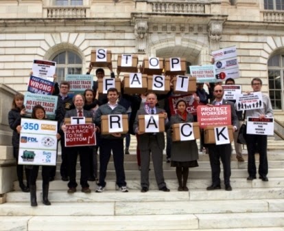 ... a broad coalition of labor, environmental and consumer groups delivered over half a million petition signatures and letters to key Congressional leaders today opposing Fast Track authority for the pact. ...